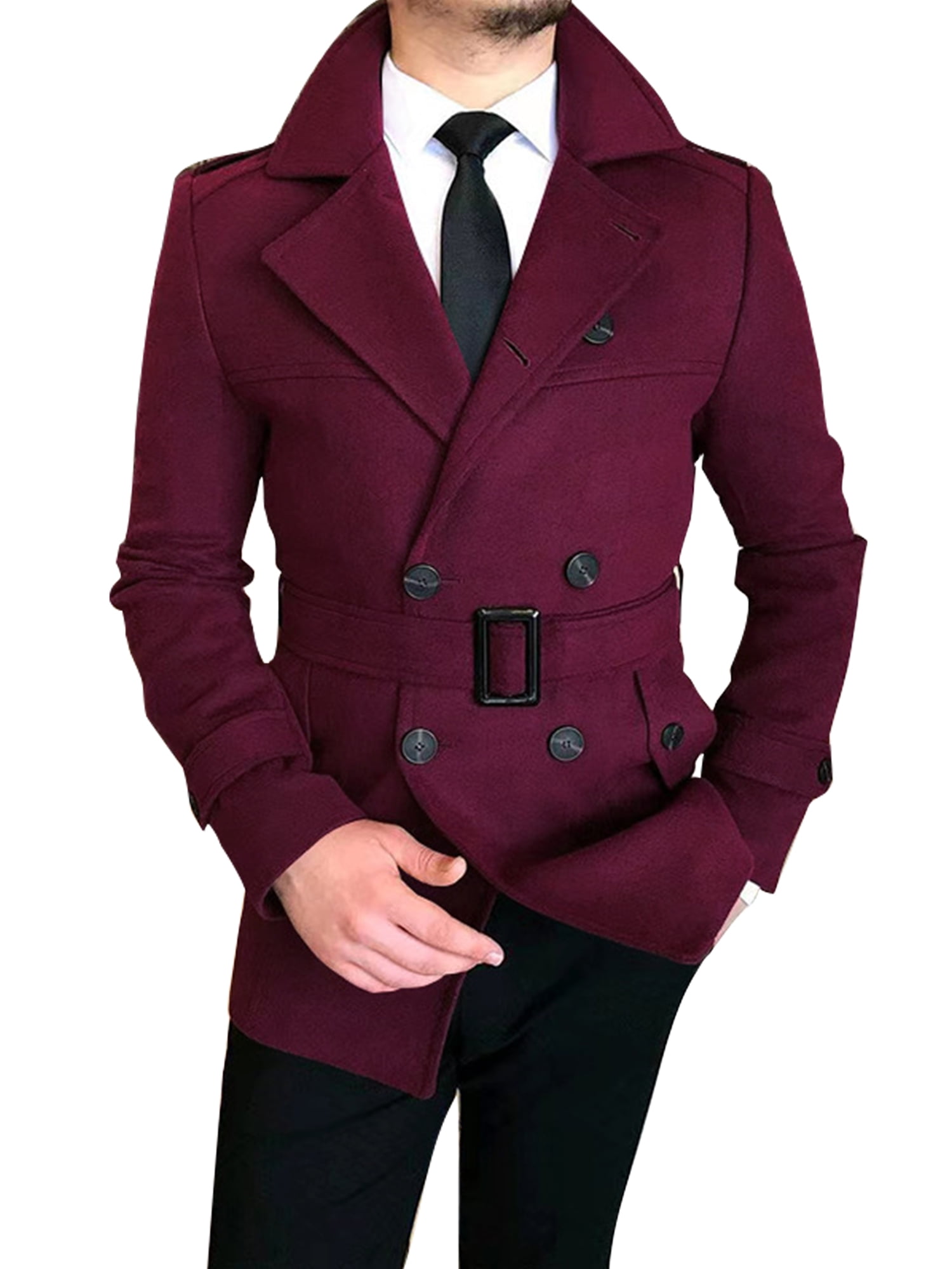 Cindysus Men Trench Coat Double Breasted Winter Warm Jacket Long Sleeve Pea Coats Button Down Office Lapel Outwear Wine Red L Walmart Com
